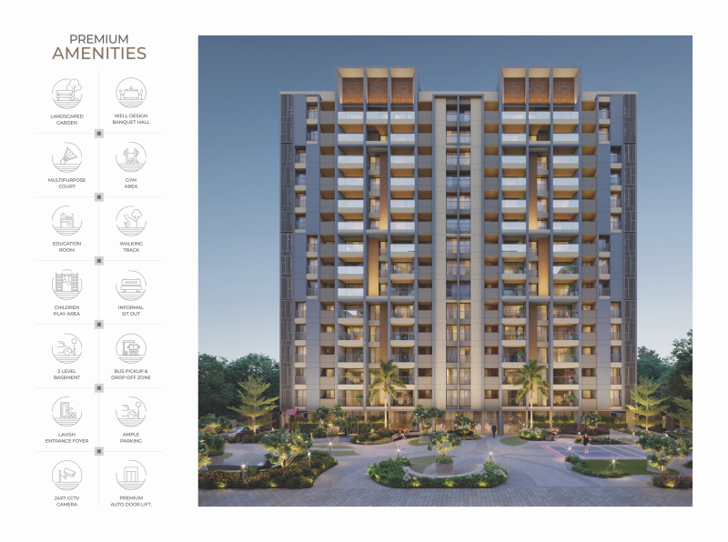 This spacious 3 BHK flat located in Adajan,Pal Road, Surat, 3 Master Bedrooms, 4 Super high-rise towers in the campus, is an ideal choice for those looking for a comfortable and luxurious living space. Situated on the 5th And More floor of a 21-storey building, this property offers stunning views and ample natural light. 30+ Modern Aminities,\\r\\n\\r\\nThe flat spans an impressive 2302/2340 sq.ft., providing residents with plenty of room to relax and entertain. The property features 3 bathrooms, ensuring convenience for all occupants.\r\n The unit is unfurnished, allowing buyers to customize the space according to their tastes and preferences.\\r\\n\\r\\nBuilt by a reputed builder, this apartment is part of a gated society, offering residents privacy and security. The property is well-ventilated, ensuring a constant flow of fresh air. Its east-facing orientation allows for ample sunlight throughout the day, creating a warm and inviting atmosphere.\\r\\n\\r\\nLocated in a prime area, this flat is in close proximity to various amenities such as shopping centers, schools, hospitals, and restaurants. The wide road facing the property adds to its appeal, making it easily accessible for residents and visitors.\\r\\n\\r\\nThe flat is a corner property and comes with freehold ownership, providing buyers with peace of mind regarding the legal status of the property. The luxurious lifestyle offered by this residence is complemented by its spacious layout and high-end finishes.\\r\\n\\r\\nIn summary, this 2 BHK flat in Adajan, Surat, is a perfect blend of comfort, style, and convenience. With its prime location, ample living space, and well-designed features, this property is sure to impress even the most discerning buyers.